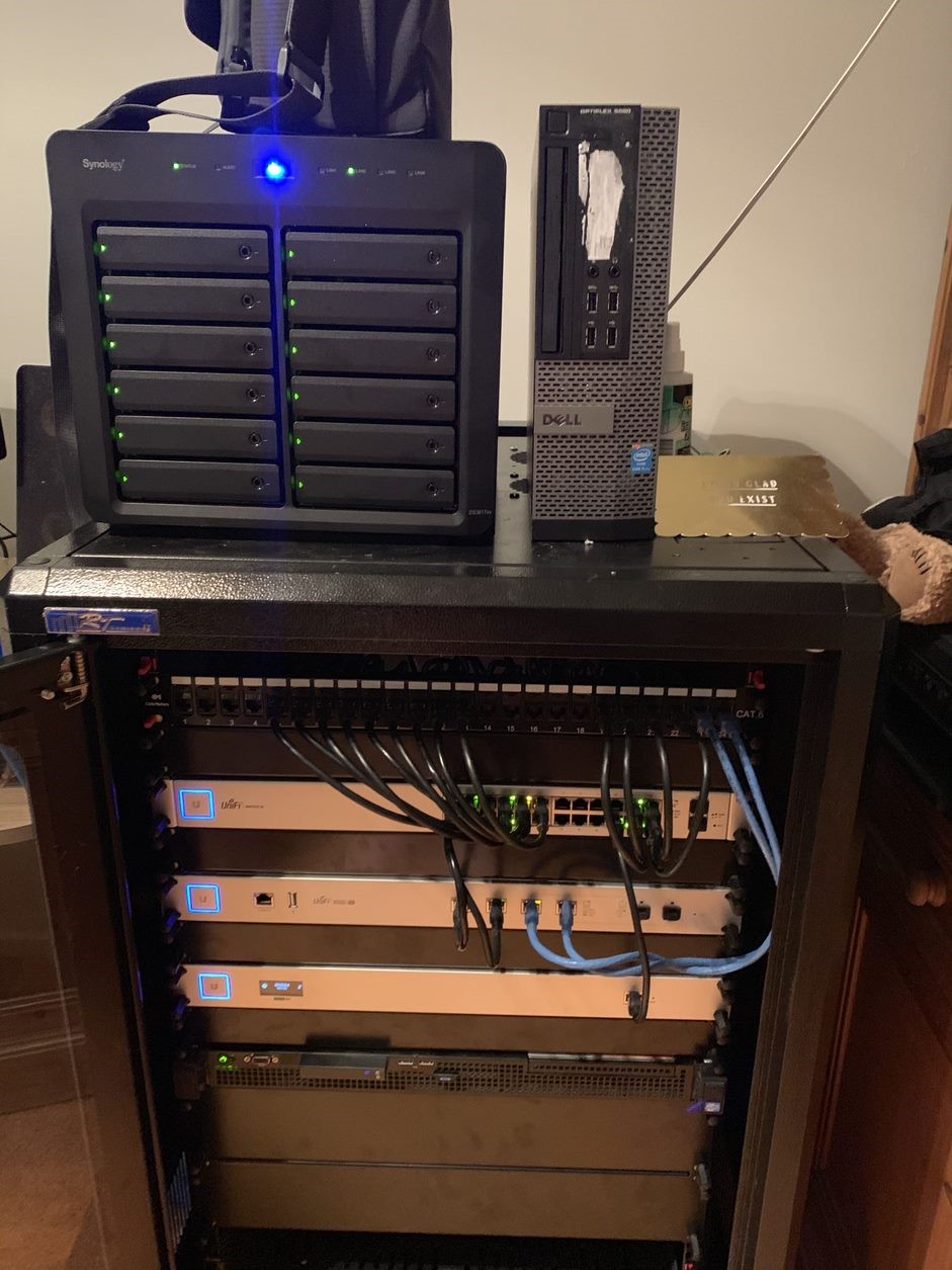 I also ran out of storage and was looking for options for larger cases or devices. As with the Ubiquiti network, I wanted something integrated, so I ended up with the Synology 3617xs. This thing is probably far more overkill than I ever needed, but it provided all the storage I needed (with two additional storage arrays available to connect through Infiniband), as well as compute for “prod” services. This thing still runs to this day, with 0 issues, and storage is easy to manage.