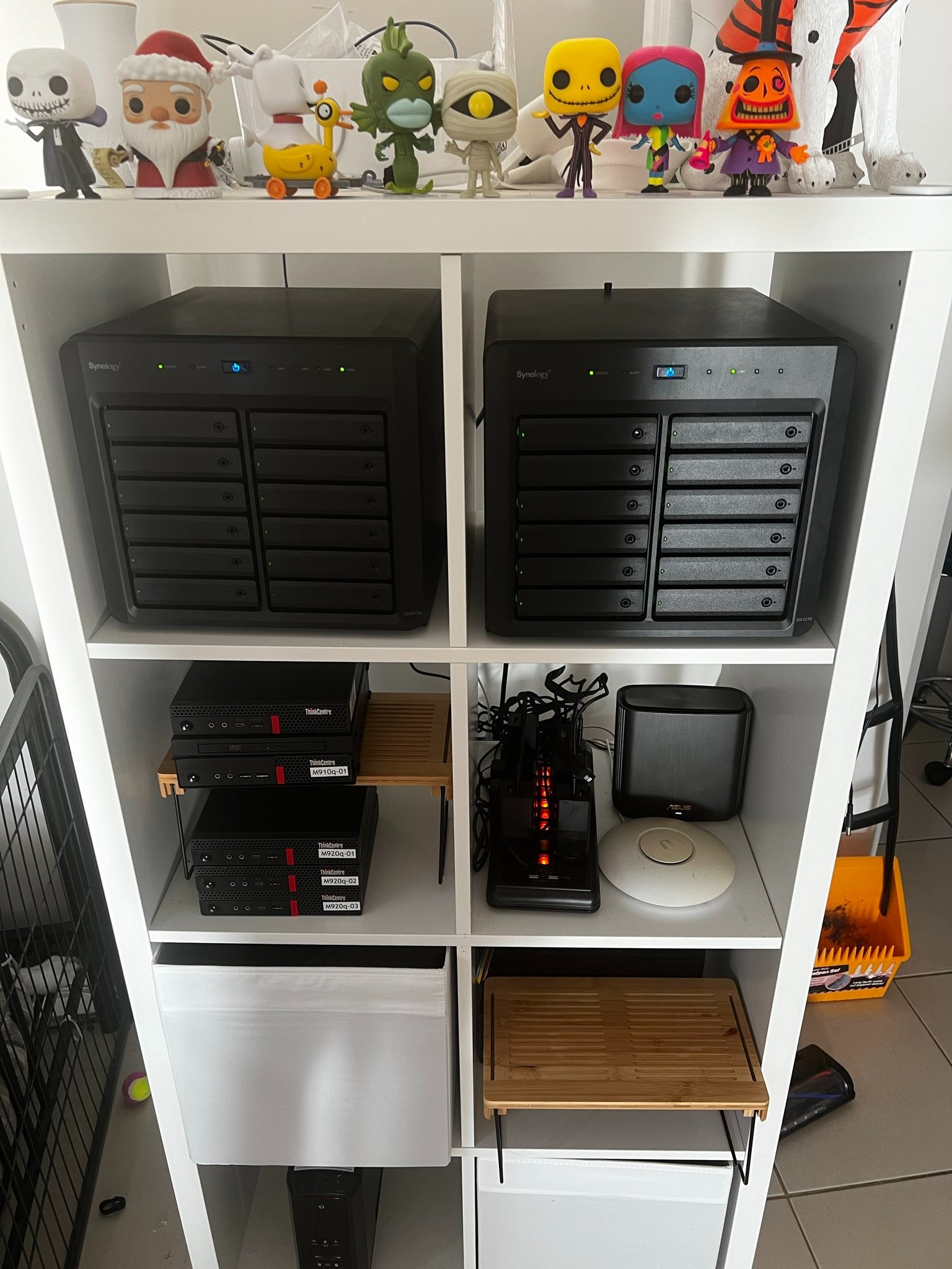 - 2 x Asus XT8 Access Point Honestly, I didn’t do much with the homelab after 2020. I ripped out most of the Ubiquiti gear as I’d had too many issues keeping it running (when the UDM-PRO had an update, the RJ45 SFP+ would stop working, for example), and the non-ethernet-uplink mesh performance was complete and utter garbage. I replaced my entire Ubiquiti setup with a set of two Asus XT8, which continues to be utterly amazing. I bought a new DX1215 for the Synology NAS to upgrade the storage to ~120Tb usable. I purchased the Dell Desktop to enable transcoding on Plex through either Intel Quicksync or nVidia NVENC.