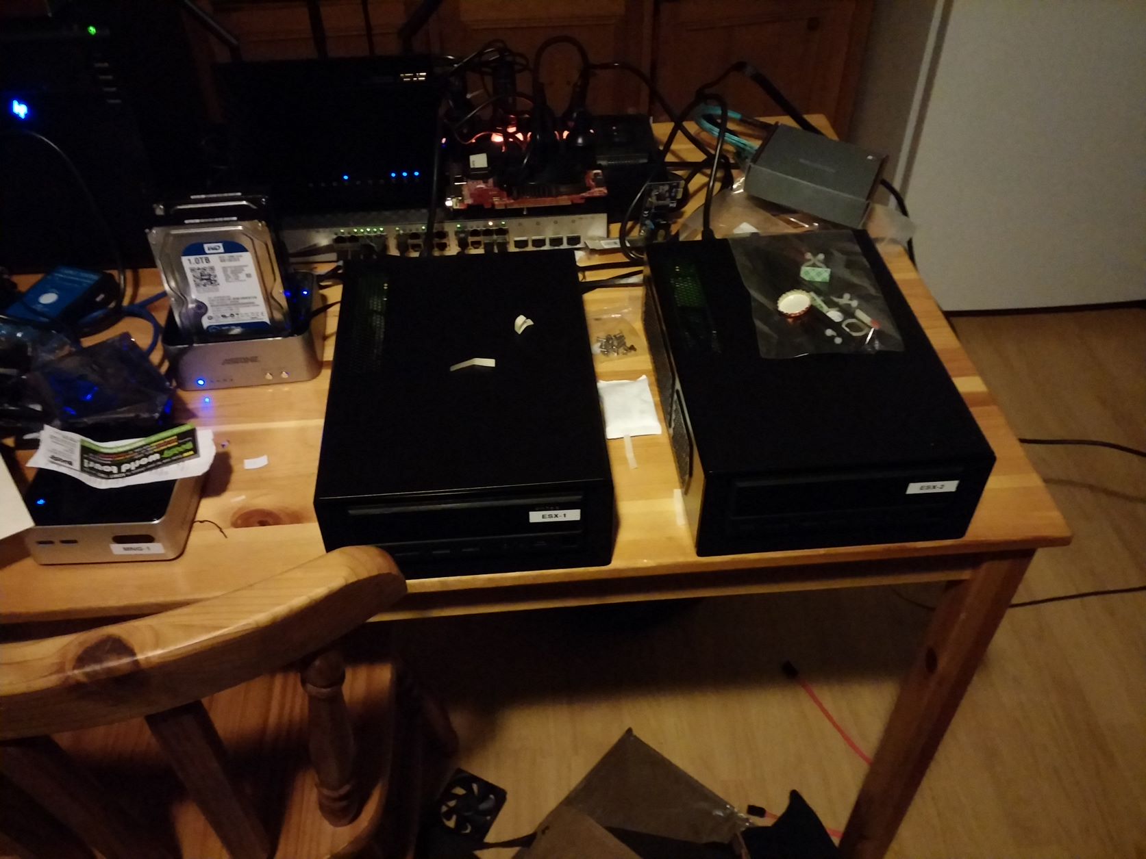 Eventually, I got all the boxes consistently built and then… I didn’t really do anything with it. I installed ESXi and vCentre ran a few VMs (but nothing to really use the capacity). It was a really hectic time at work and quite a stressful point of my life (in some cases that I’d rather forget). I also think I was excited by the idea of having my own rack, So rather than move house with this, I sold all the server bits off and moved to a less power-hungry solution. Which brings us to…