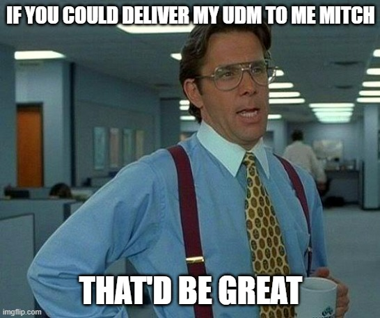 Side History: The friend who was a Ubiquiti reseller became a meme between a few of us, as everyone was waiting for our Unifi Dream Machine Pros (I bought mine separately as I got a good deal with a few other bits and pieces). Such amazing work included the following:
